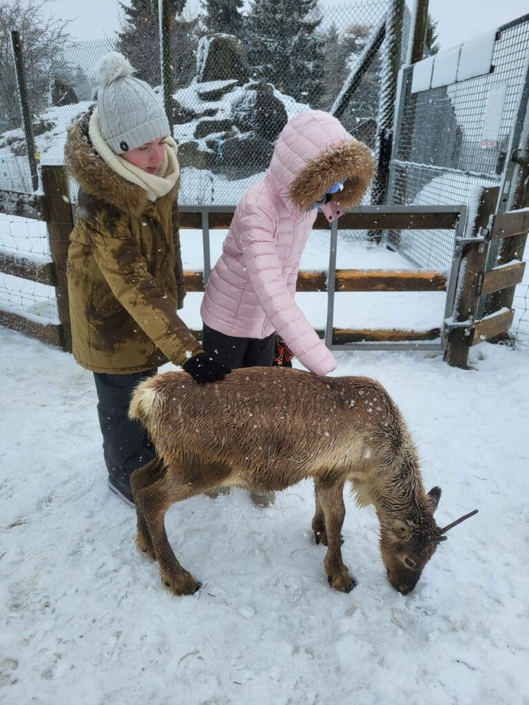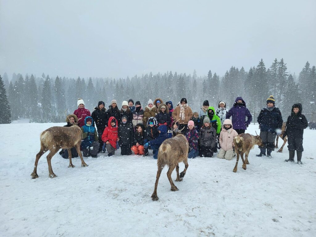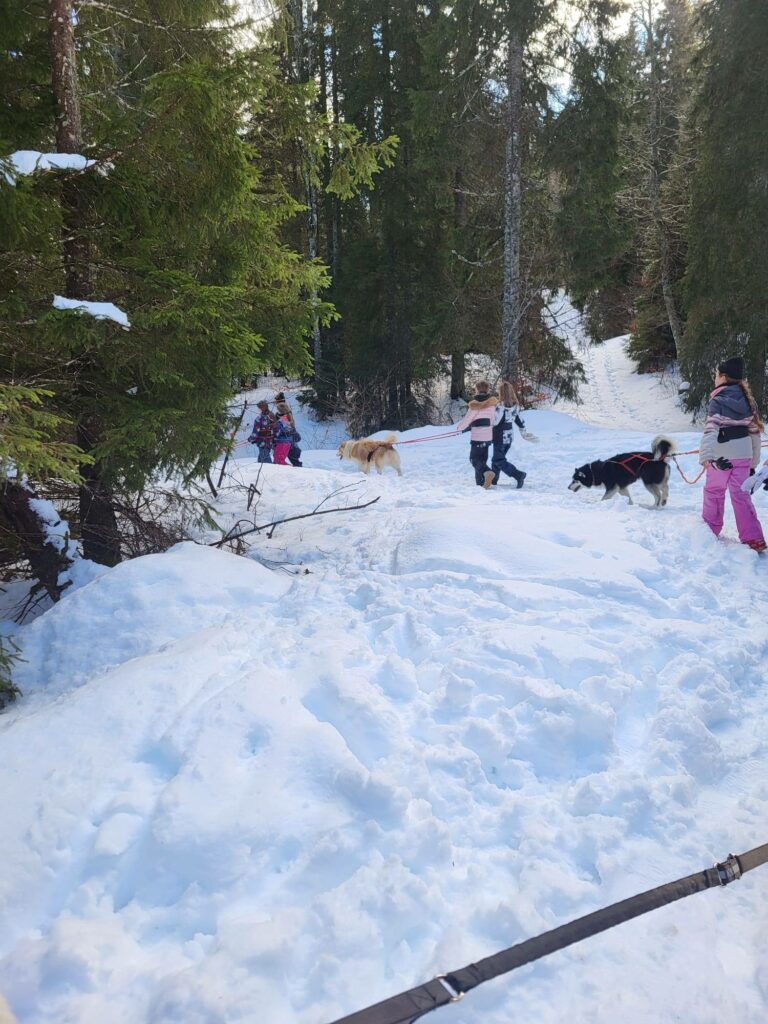 Aujourd’hui activité dans le Jura. Le matin, une immersion sous la neige au parc polaire, au milieu des cerfs, des chevaux sauvages et nourrissage des rennes . L’après-midi, les équipages Adam’s, échange avec des muschers et cani-cross. Une belle rencontre avec les chiens.