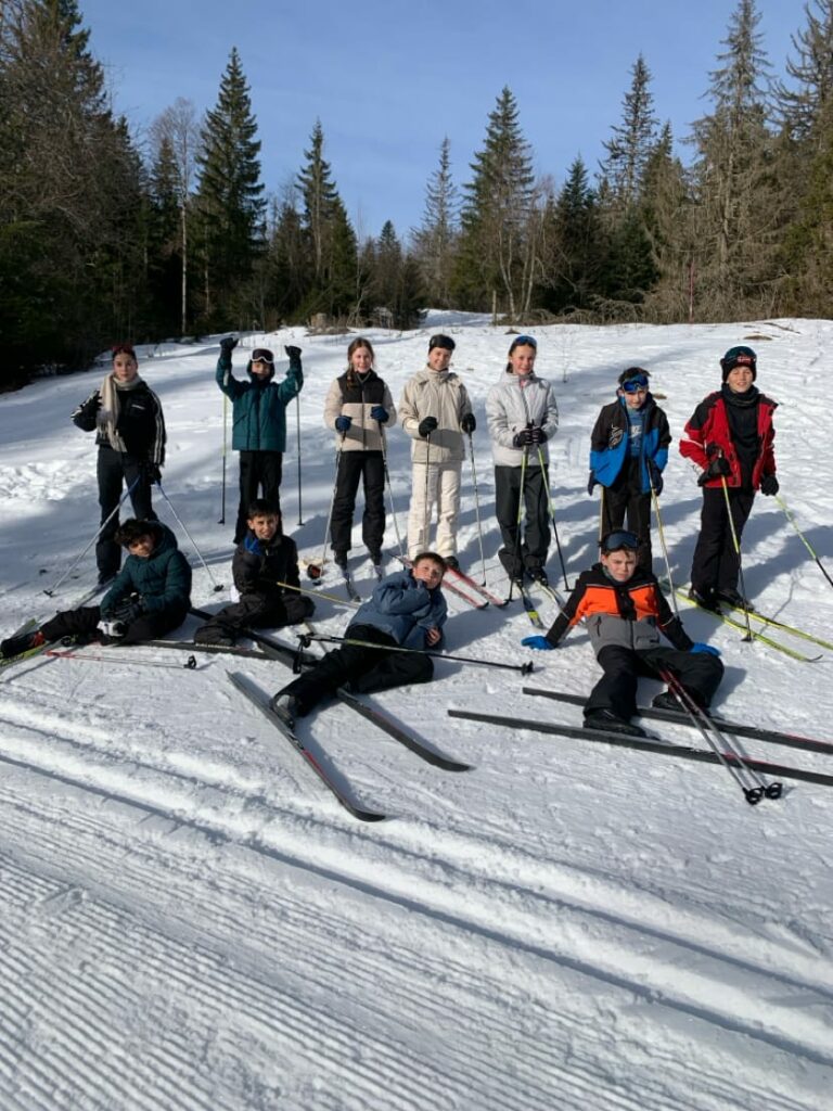 Dans le cadre du projet ASO et de l’AS RAID, une sortie de ski de fond était prévue. Après de nombreuses annulations pour cause de neige, nous avons, cette année, enfin pu honorer cette activité. Et l’ensemble du groupe a réussi avec Brio à dompter ses chaussures, ses skis et la glisse qui en découle. En effet, sous un soleil magnifique, nous avons pu nous exercer sur les pistes de Giron. A midi le pique-nique était mérité et a été englouti pour reprendre des forces l’après-midi.